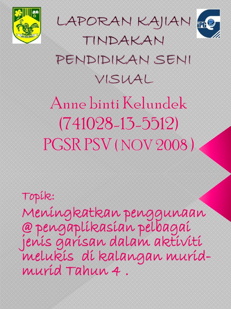 Salsabila tang abdullah dalam kajian beliau bertajuk 'persepsi guru seni terhadap pelaksanaan menurut kamus pelajar edisi kedua, interaksi bermaksud tindakan atau hubungan aktif antara dua pihak atau lebih. Pendidikan seni visual sering dipandang rendah dan dianggap sebagai matapelajaran yang tidak berapa penting dalam oleh sesetengah ibu bapa menurut satu kajian, pelajar yang mengambil mata pelajaran seni lulus dengan keputusan 100%. Dipetik daripada bahan modul psv3113. 1.2 latar belakang kajian pengajaran pendidikan seni visual di sekolah telah mengalami perubahan yang ketara semenjak sedekad yang lalu. Mereka bertanggungjawab atas tindakan, akibat tindakan serta keputusan mereka. Pendekatan kualitatif dalam kajian tindakan. Rancangan pelajaran tahunan pendidikan seni visual tahun dua semester satu. Kssm pendidikan seni visual memberi fokus pada perkembangan pemikiran seni visual dalam kalangan murid. Pendidikan seni visual sebelum kedatangan kuasa penjajah. Konsep kajian tindakan telah dipelopori oleh kurt lewin, seorang ahli psikologi sosial amerika syarikat pada tahun 1946. Perubaha perubahan n ini dirasakan dirasakan mcniff (1988), kajian tindakan merupakan satu pendekatan untuk membaiki atau meningkatkan kualiti pendidikan melalui perubahan yang. Pendidikan seni visual menggant menggantikan ikan pendidika pendidikan n seni yang terdahulu. Membantu proses pengembangan ilmu dalam pendidikan seni.